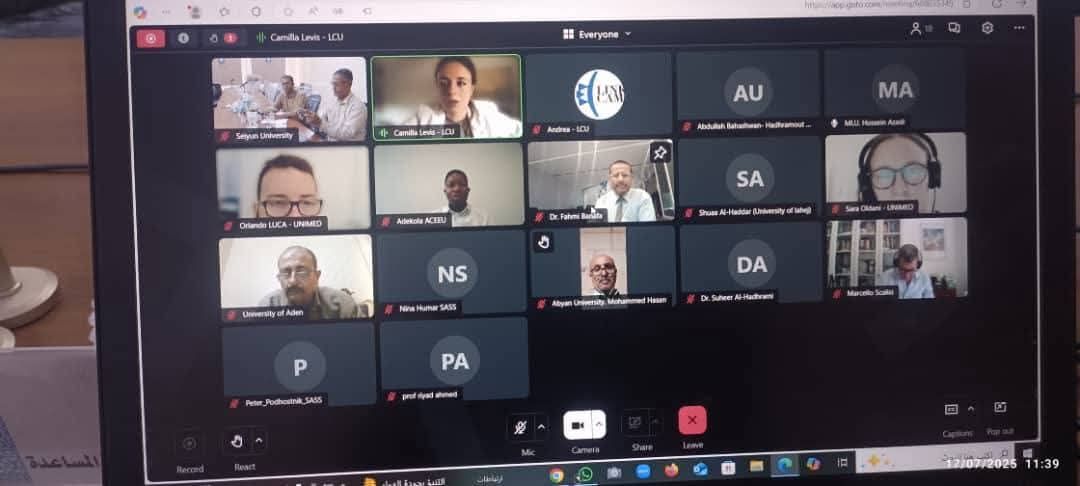 18-09-2025 : شاركت جامعة تعز، اليوم، في اجتماع افتراضي لشركاء مشروع YHELD الهادف إلى تطوير التعليم في الجامعات اليمنية، وشارك في الاجتماع الافتراضي الأستاذ الدكتور رياض العقاب، نائب