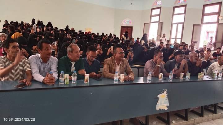 الدكتور/عبدالرقيب السماوي، د. أحلام الحمادي رئيسة مركز الارشاد والبحوث النفسية ، د. خالد الشميري نائب عميد كلية التربية ، رشاد حمود نائب مدير مركز الارشاد والبحوث النفسية